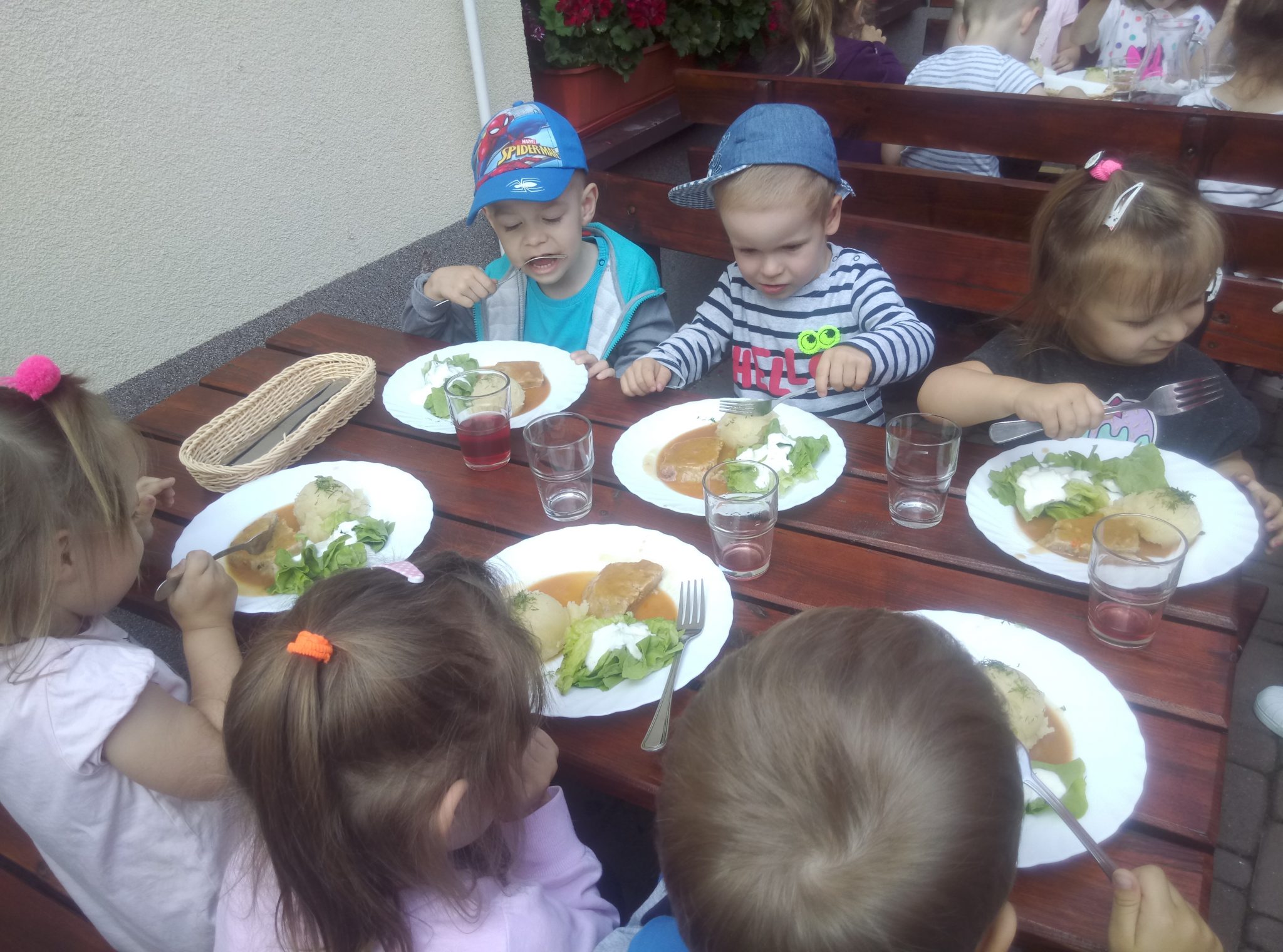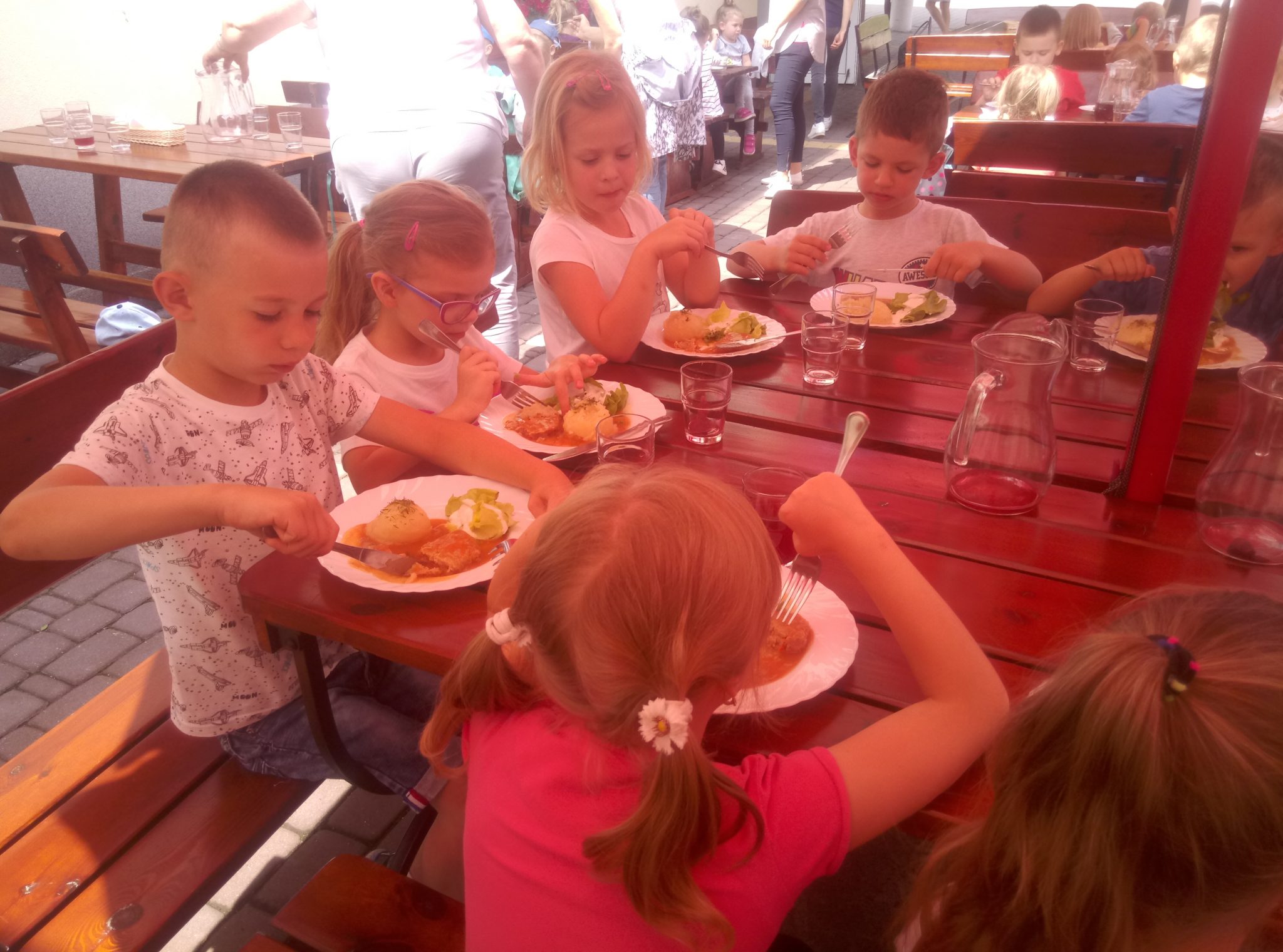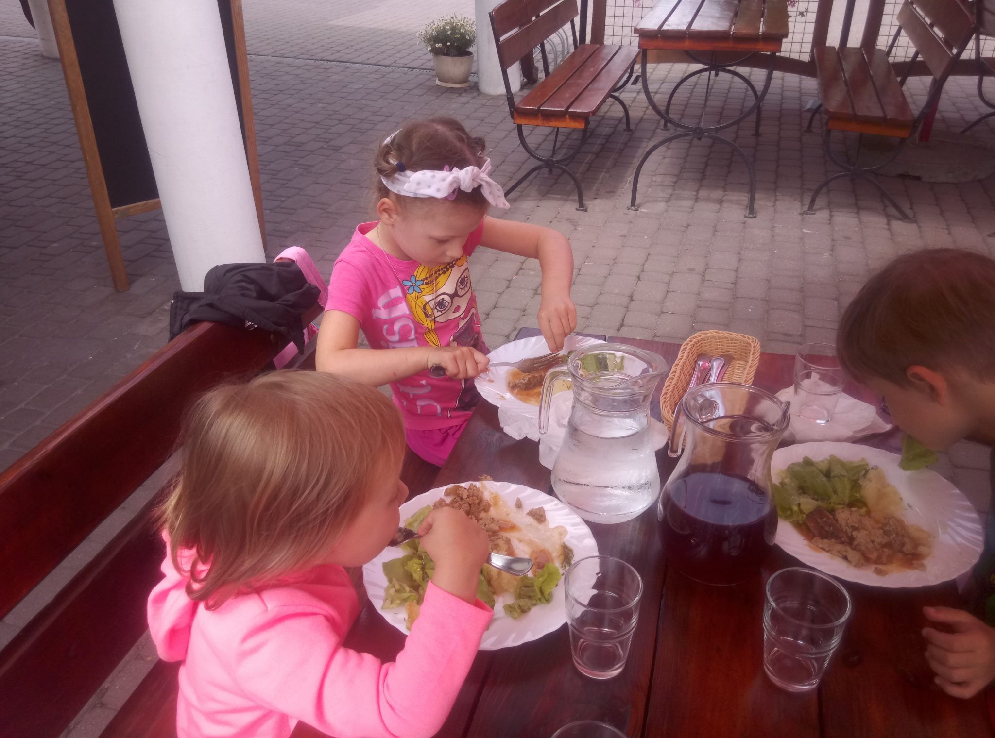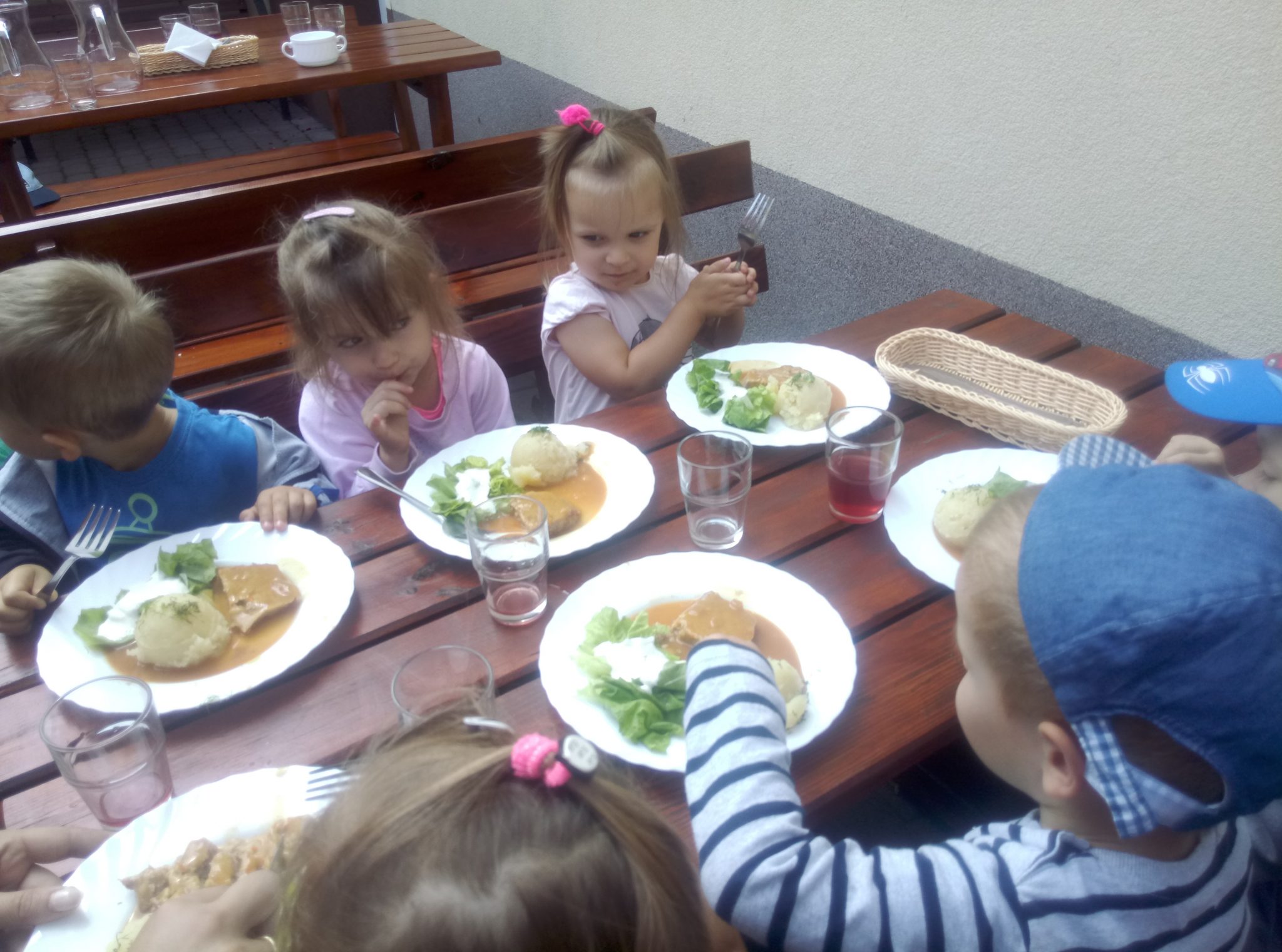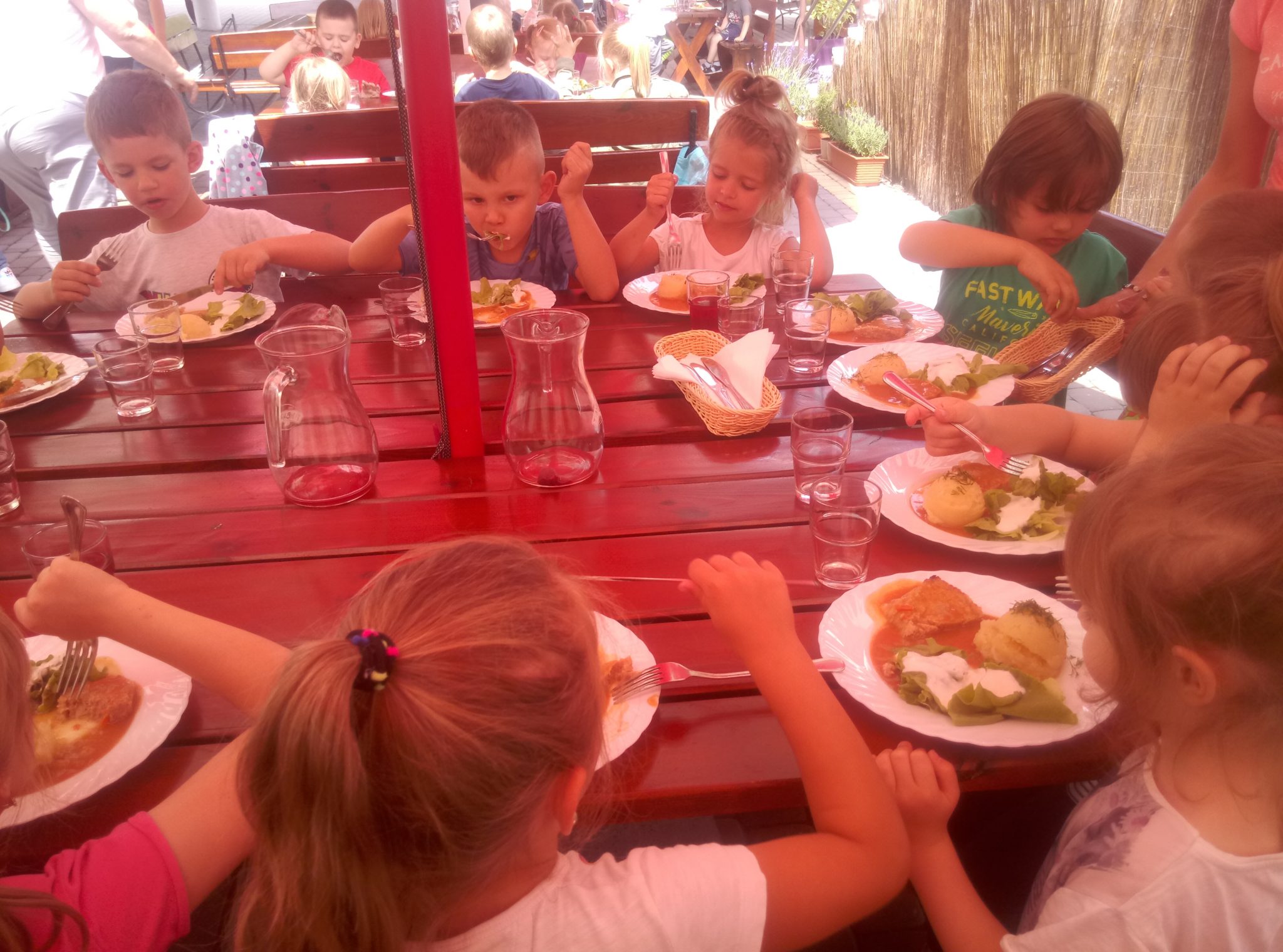 Głodni, zmęczeni, ale szczęśliwi dotarliśmy do docelowego miejsca naszej podróży – Restauracji Zamkowej w Drohiczynie. Czekała tu na nas, jak zawsze uśmiechnięta i serdeczna Pani Teresa z przepysznym obiadem i deserami.